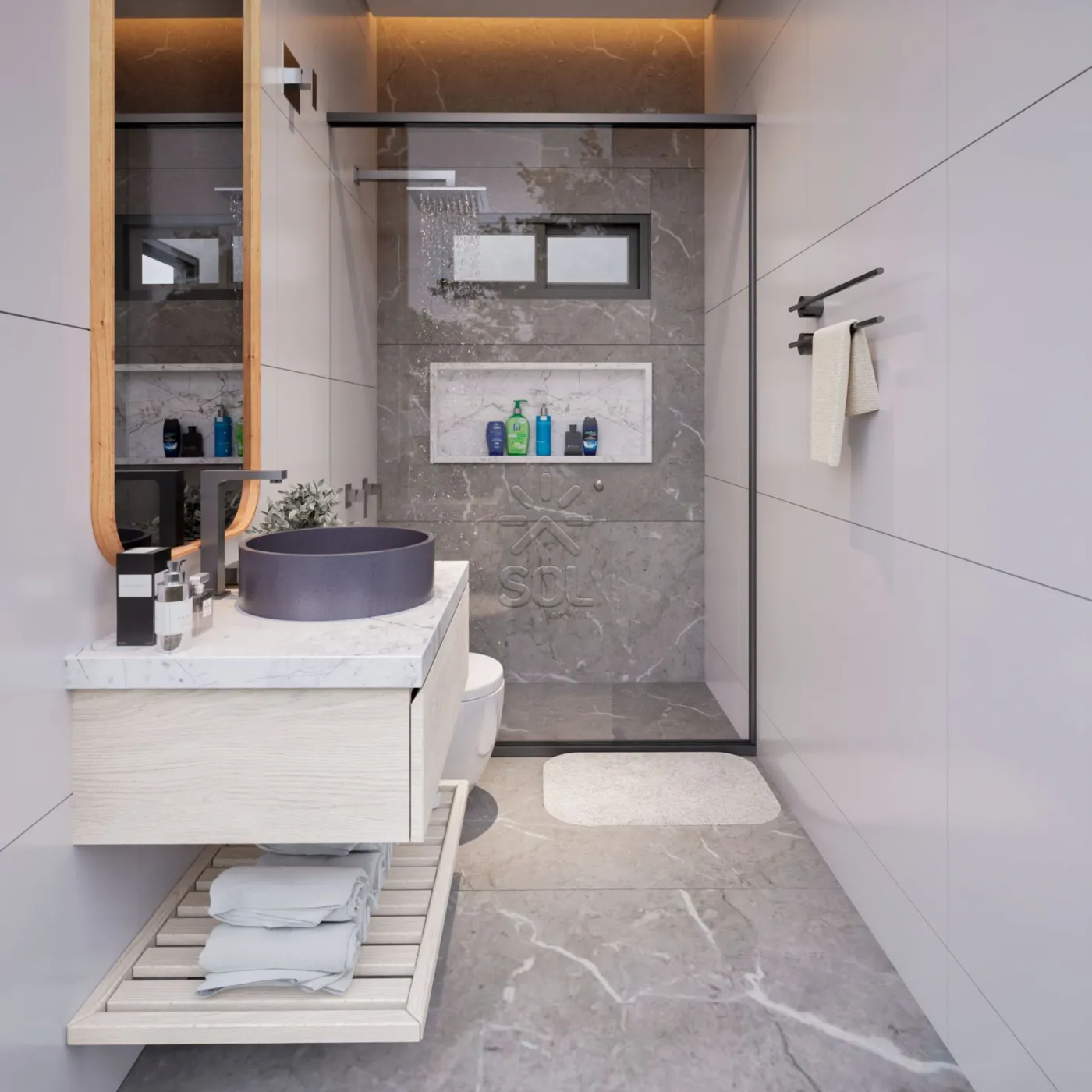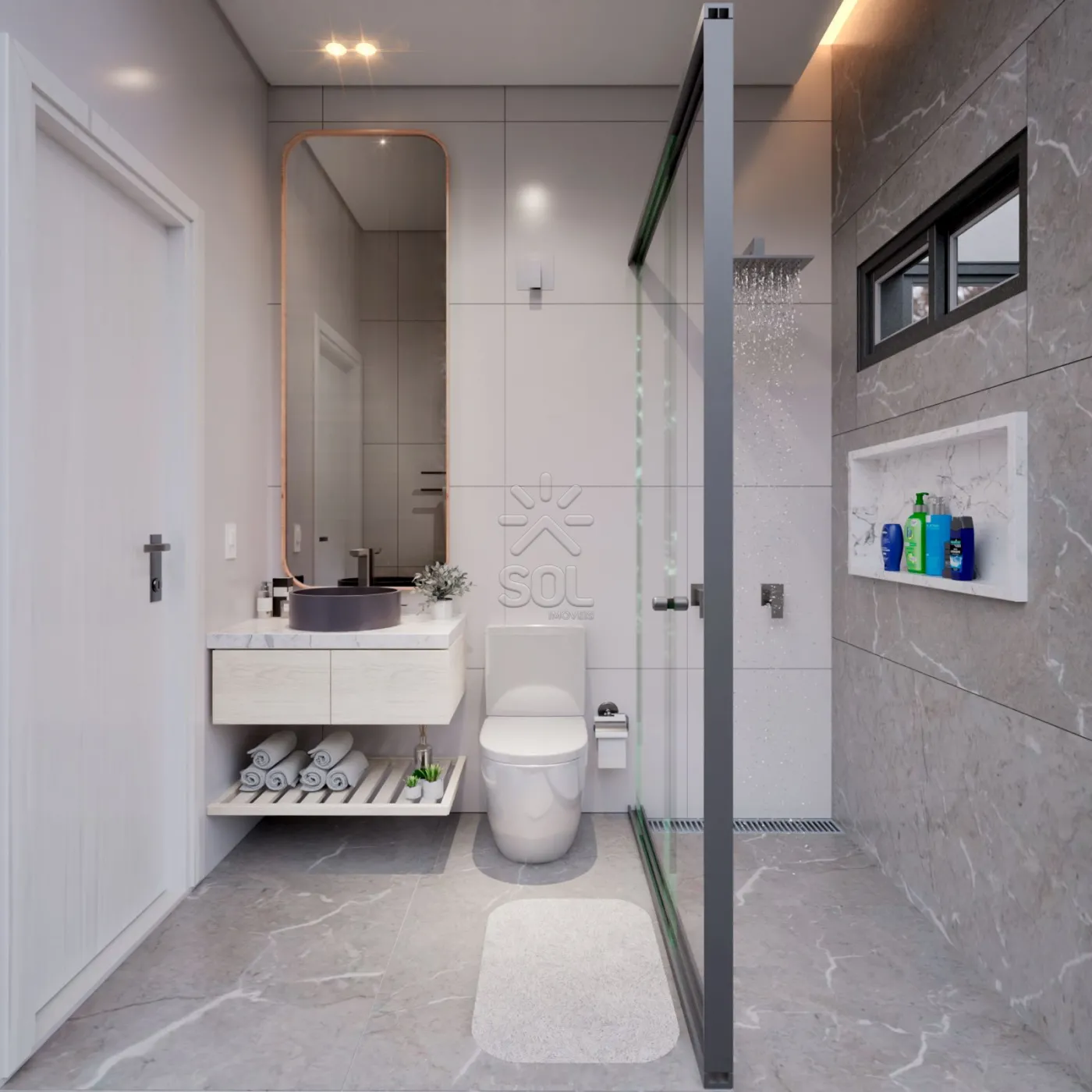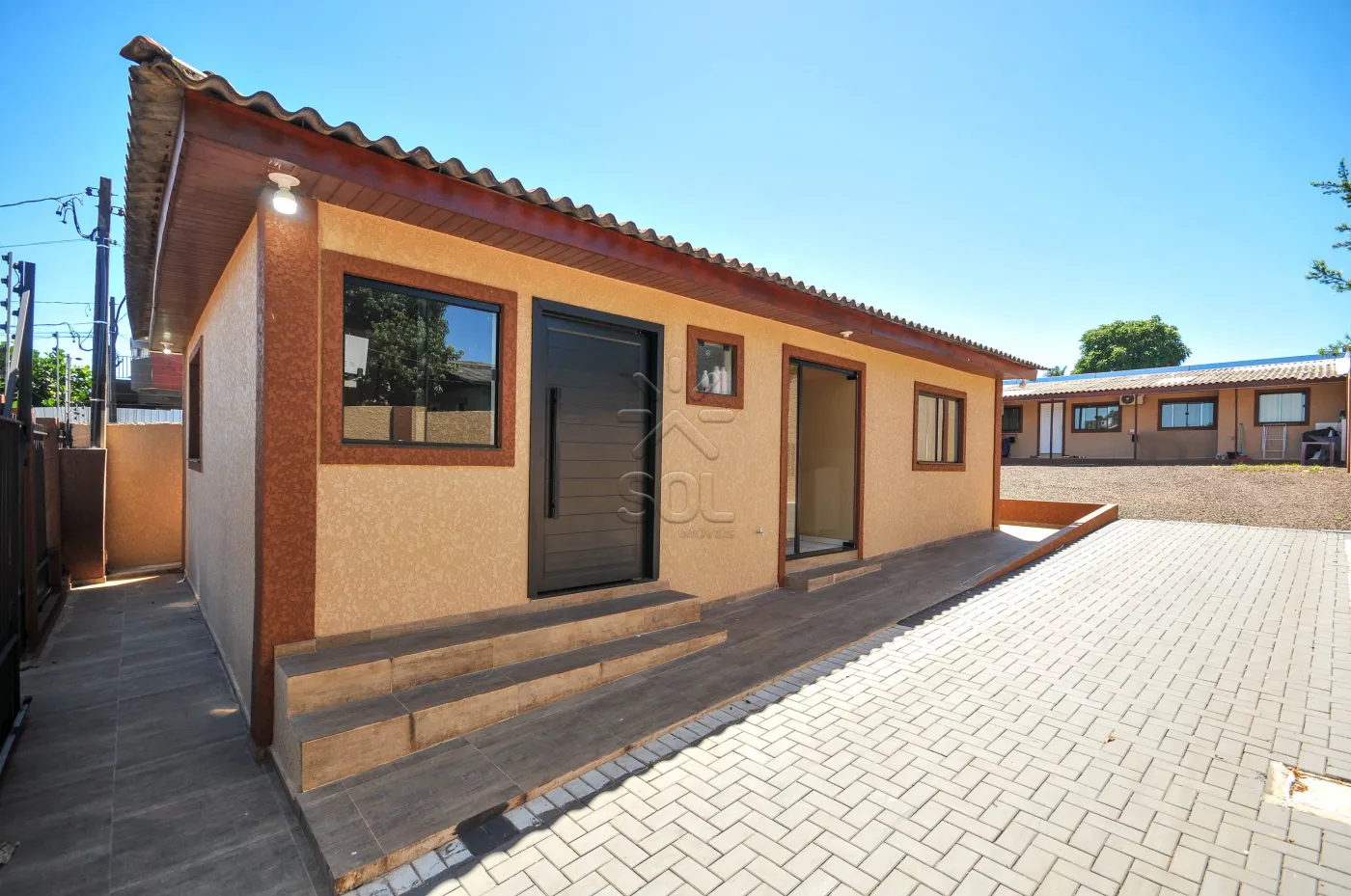 Diferenciais: Esquadrias de alumínio preto com tela mosqueteiro nos quartos; portas internas em mdf revestidas com pvc na cor cinza; rodapés em porcelanato embutidos; tubulação para água quente/fria; instalação para ar condicionado em todos os comôdos; espaço para piscina.