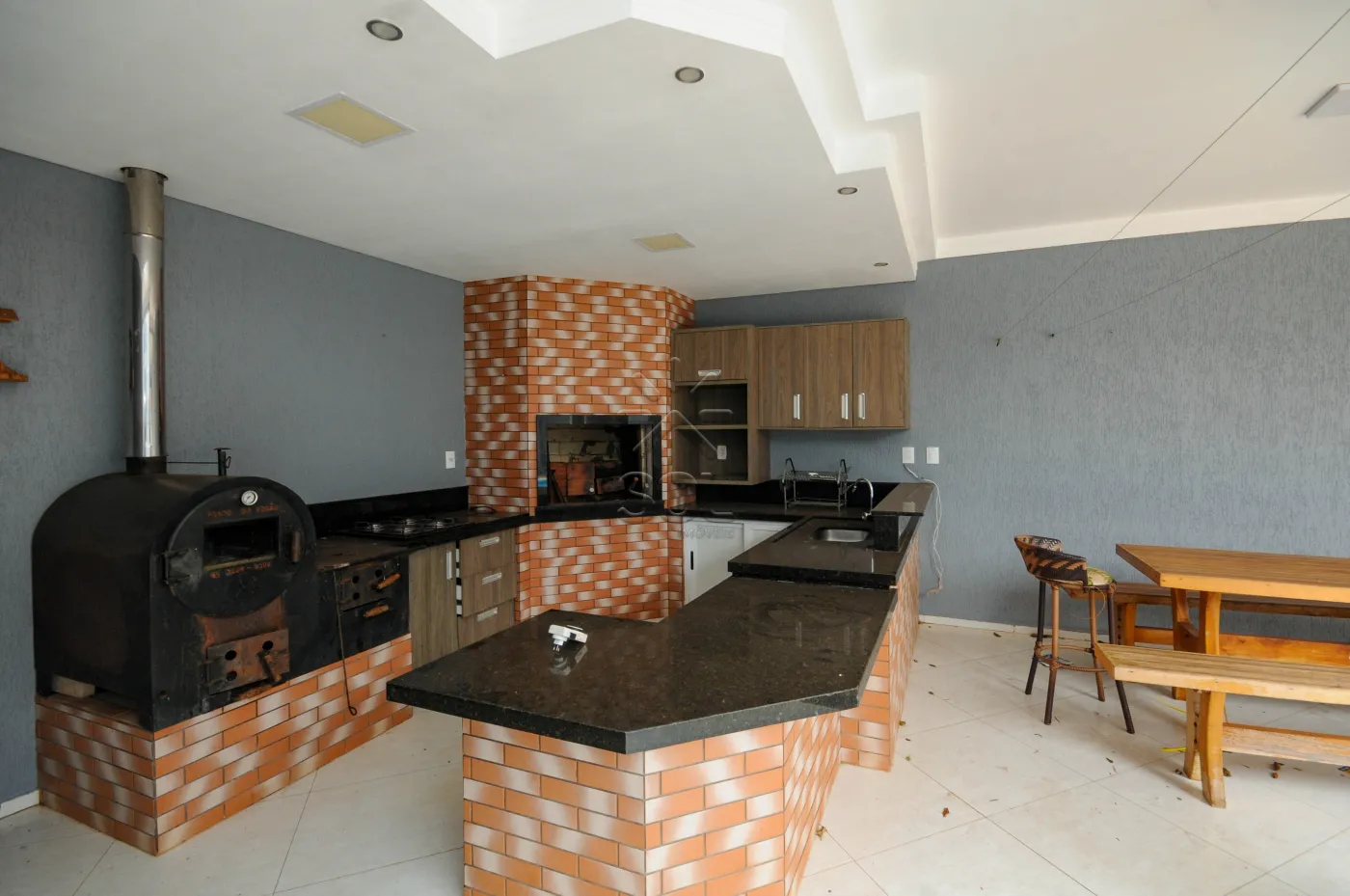 - Ampla área de lazer com churrasqueira, fogão a lenha e piscina;