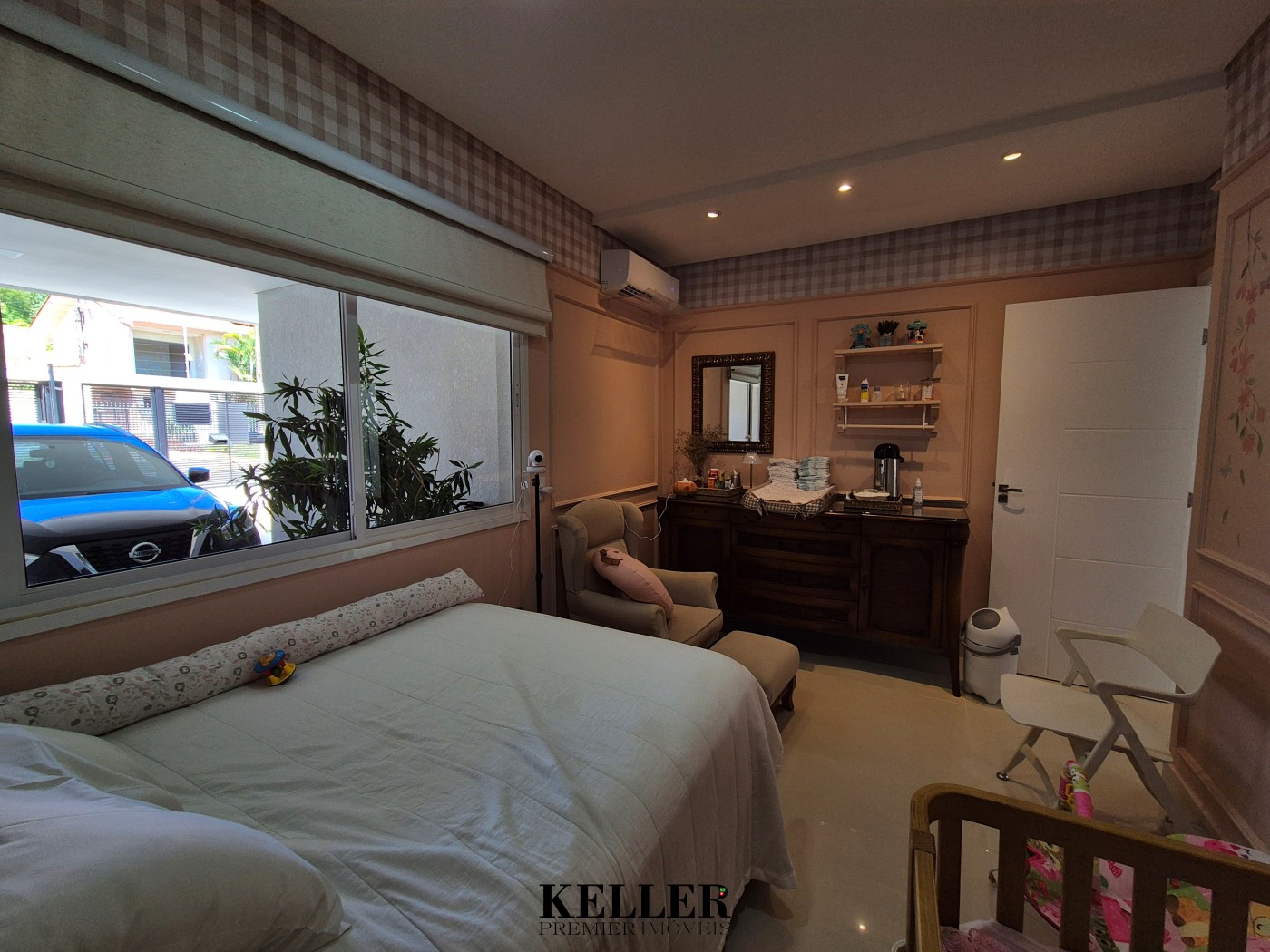Pé direito duplo na sala e alto em toda a casa, com 3 quartos sendo 1 suíte.