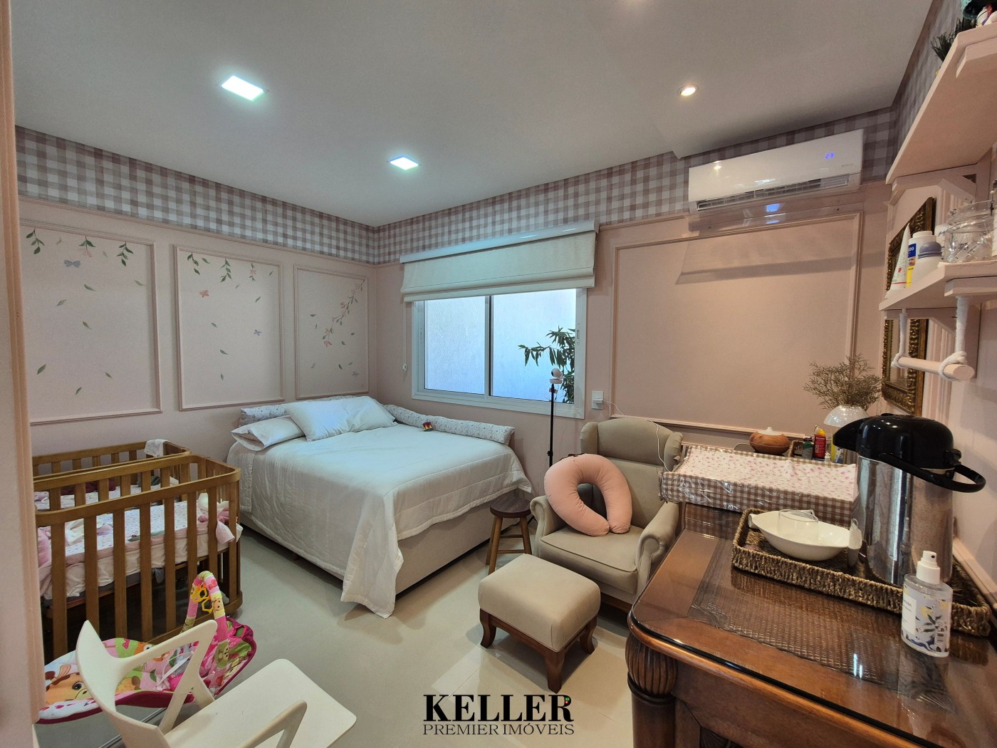 Ficam todos os móveis cob medida e também todos os aparelhos de ar condicionado.