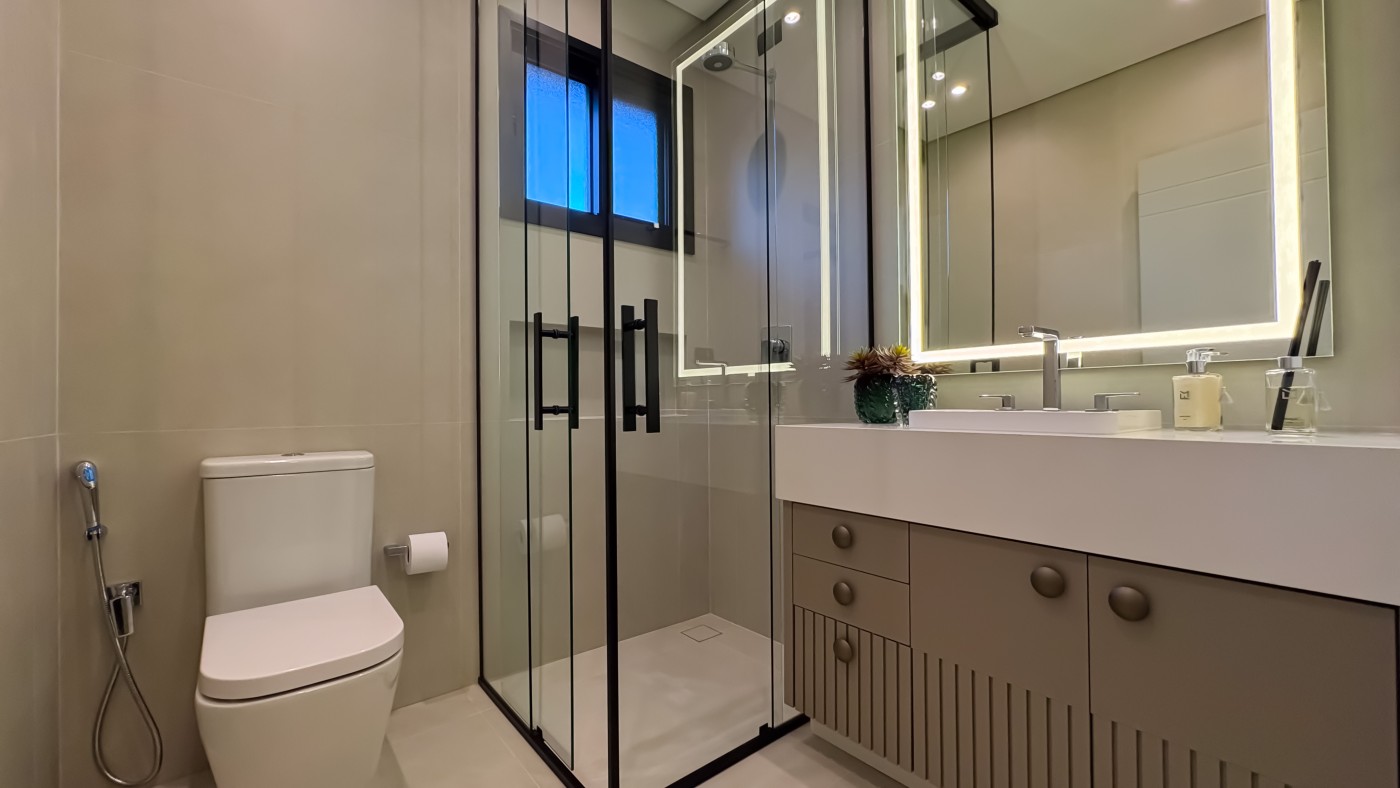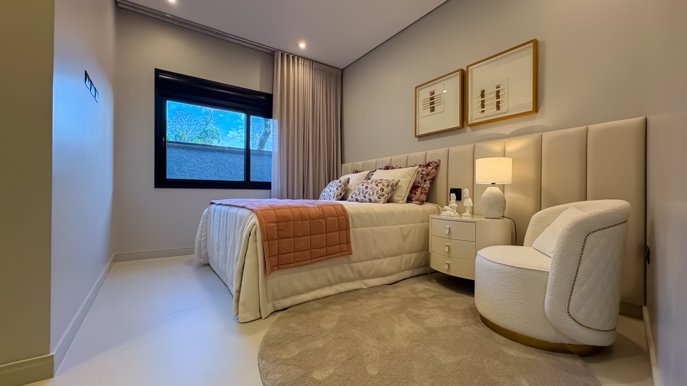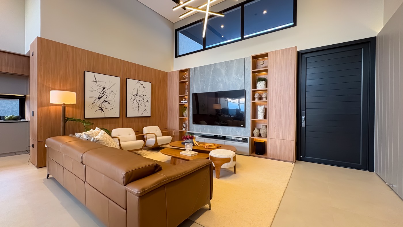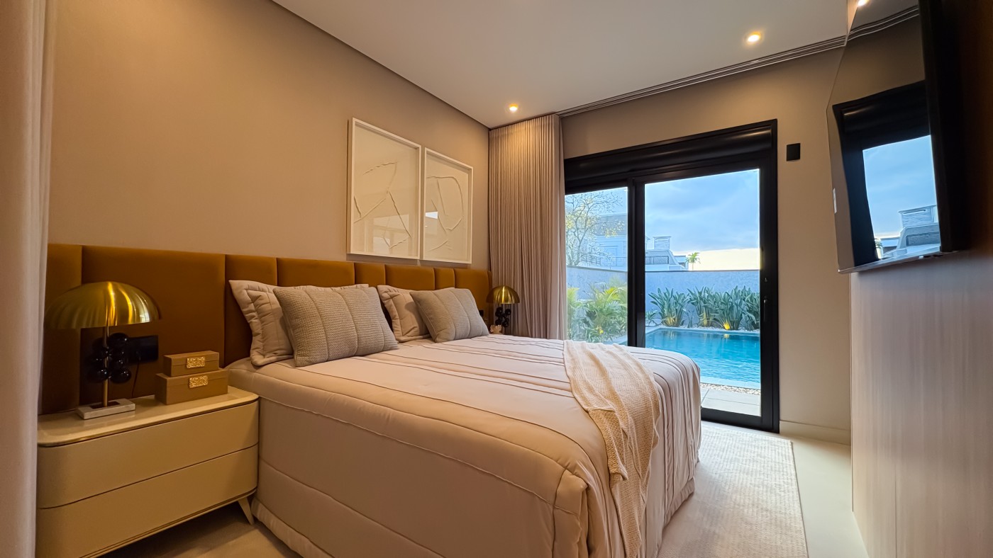 Garagem Espaçosa para dois veículos, com depósito exclusivo, trazendo praticidade e organização extra para o dia a dia; Lavanderia Completa e Lavabo em ambientes planejados para maximizar funcionalidade com elegância;Espaço Gourmet planejado para você explorar o melhor da gastronomia com sofisticação, ideal para receber convidados com charme e requinte;Ambientes integrados;Área Externa com piscina, varanda e jardim deslumbrante, perfeita para momentos de relaxamento e lazer ao ar livre;Pé-direito duplo nos ambientes sociais e pé direito elevado nos ambientes íntimos, proporcionando amplitude e um design contemporâneo que combina luminosidade e aconchego em cada ambiente;