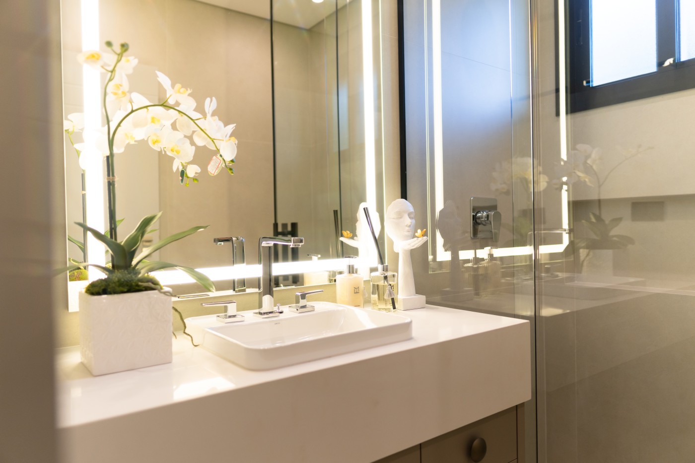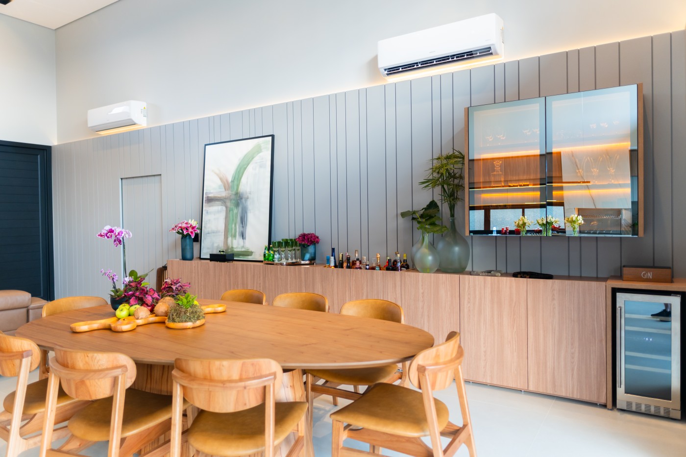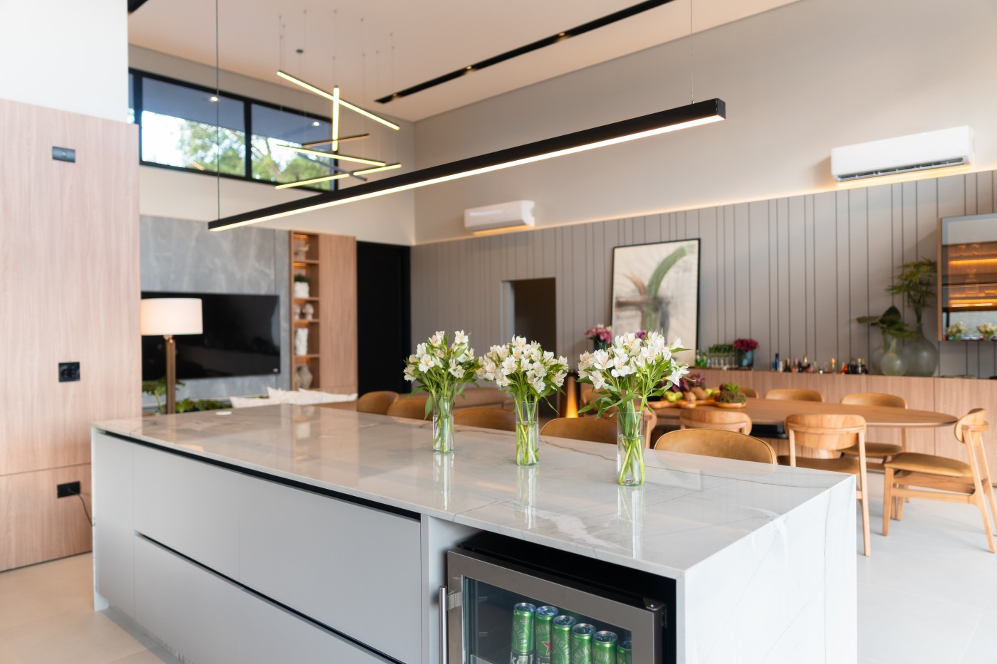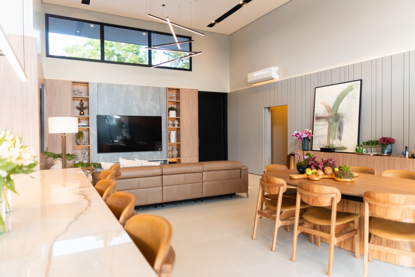 Garagem Espaçosa para dois veículos, com depósito exclusivo, trazendo praticidade e organização extra para o dia a dia; Lavanderia Completa e Lavabo em ambientes planejados para maximizar funcionalidade com elegância;Espaço Gourmet planejado para você explorar o melhor da gastronomia com sofisticação, ideal para receber convidados com charme e requinte;Ambientes integrados;Área Externa com piscina, varanda e jardim deslumbrante, perfeita para momentos de relaxamento e lazer ao ar livre;Pé-direito duplo nos ambientes sociais e pé direito elevado nos ambientes íntimos, proporcionando amplitude e um design contemporâneo que combina luminosidade e aconchego em cada ambiente;