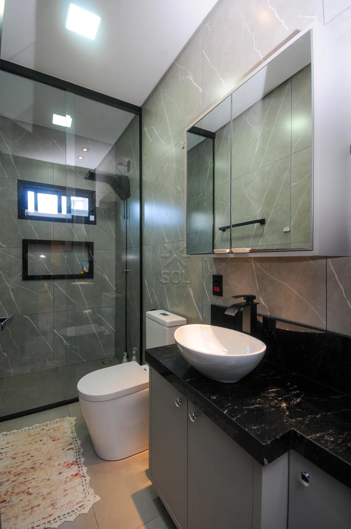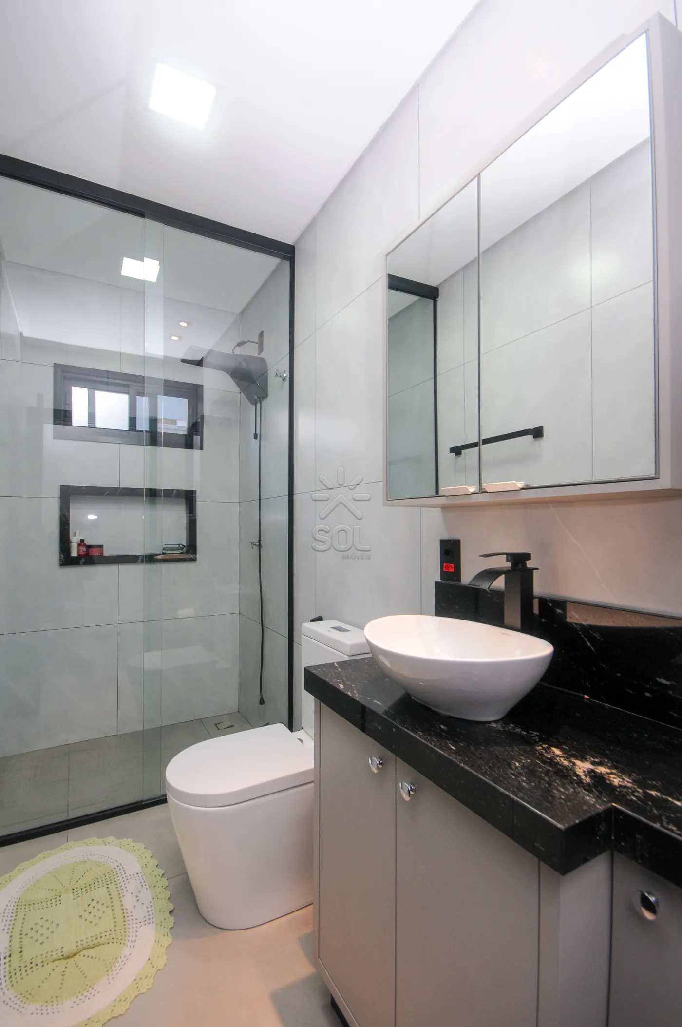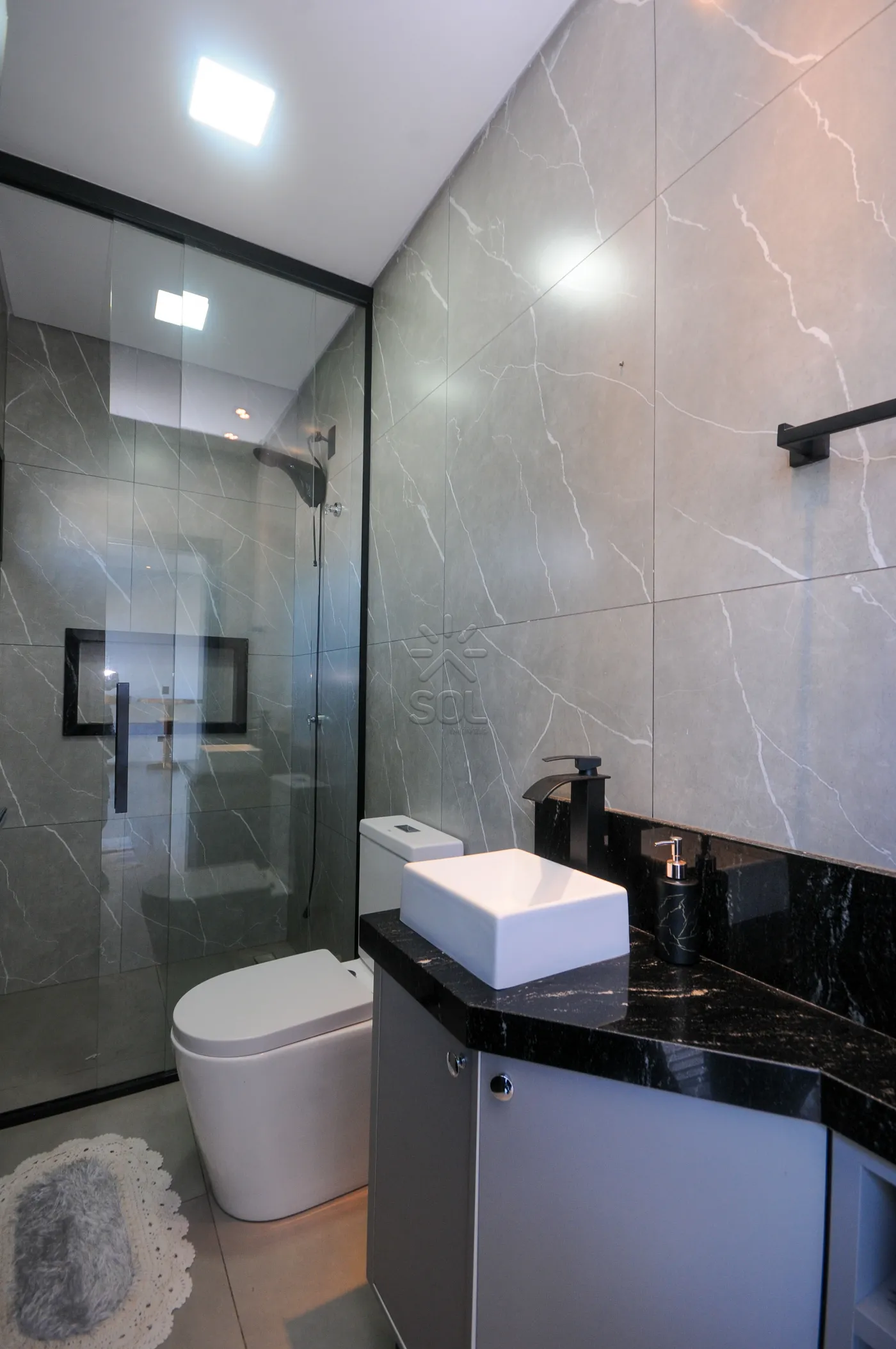 - 1 Suíte com guarda-roupas planejado, banheiro com cuba e torneira monocomando e box até o teto;