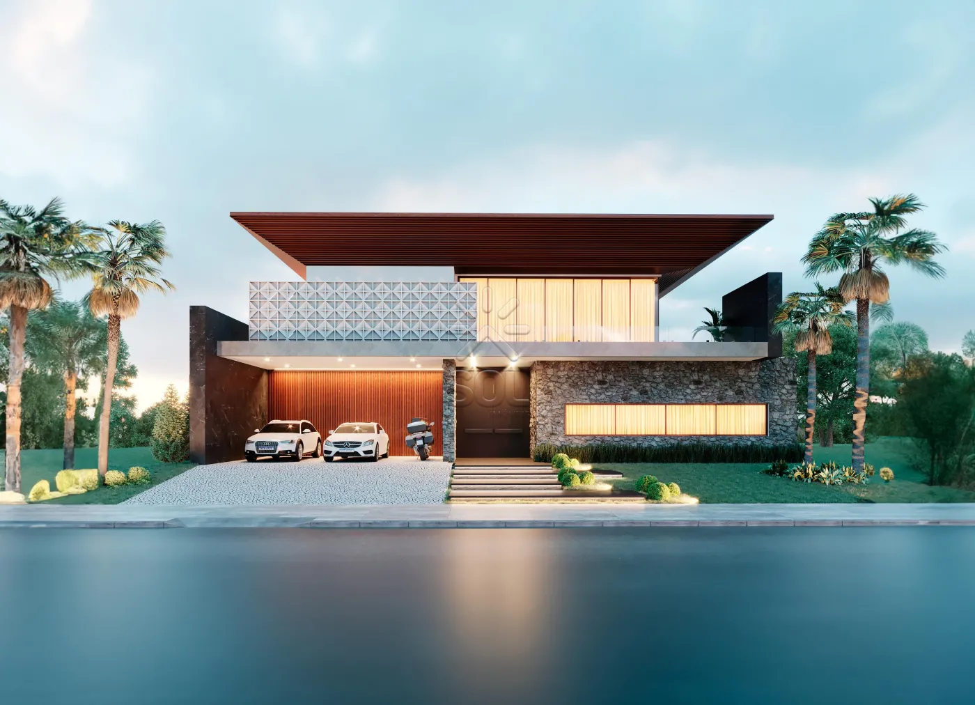 - Espelho d`água com deck que sai do gourmet e fica sobreposto a água;