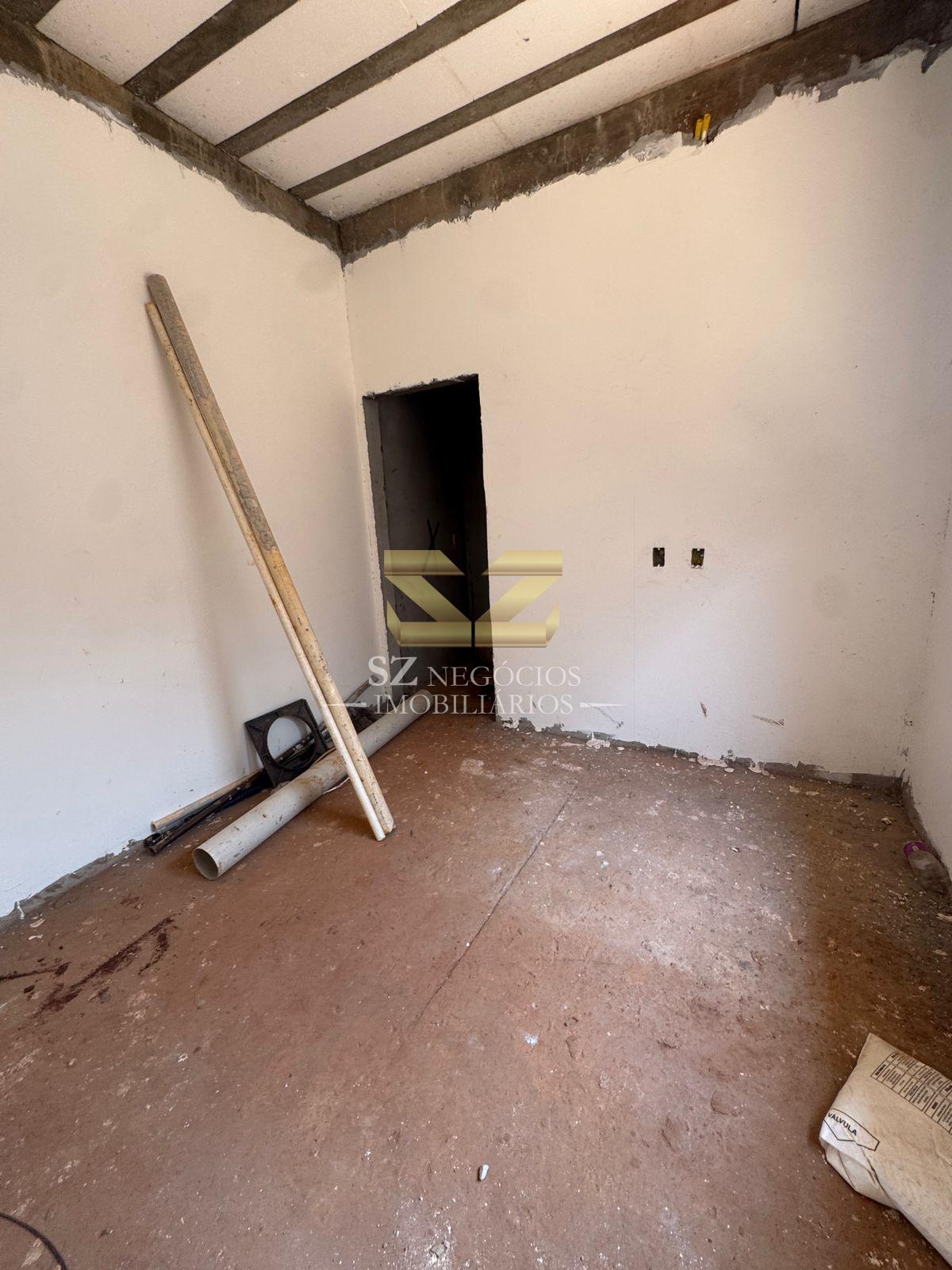Sala de estar / jantar, cozinha, banheiro social, área de serviço, espaço nos fundos e vaga de garagem descoberta.