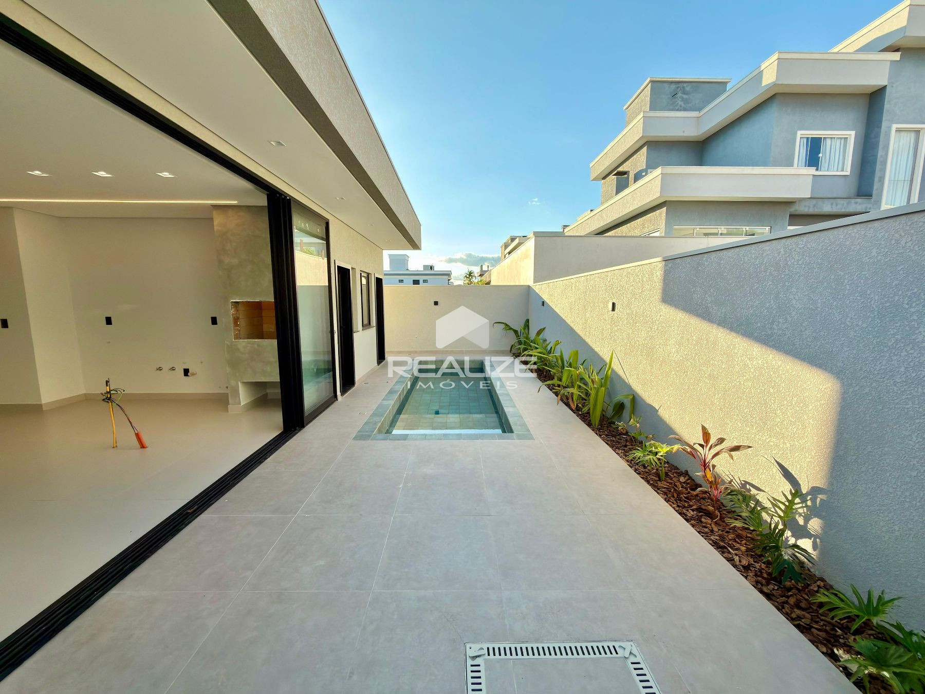 Detalhes do Imóvel: Portas externas em ACM e internas laqueadas; Janelas com persiana elétrica e tela mosqueteira; Tomada para carro elétrico; Circuito elétrico para fogão de indução e aquecedor nos pontos de água; Piscina salinizada com espera para aquecimento elétrico; Sistema de rede (internet) cabeada em todos os cômodos CAT6.