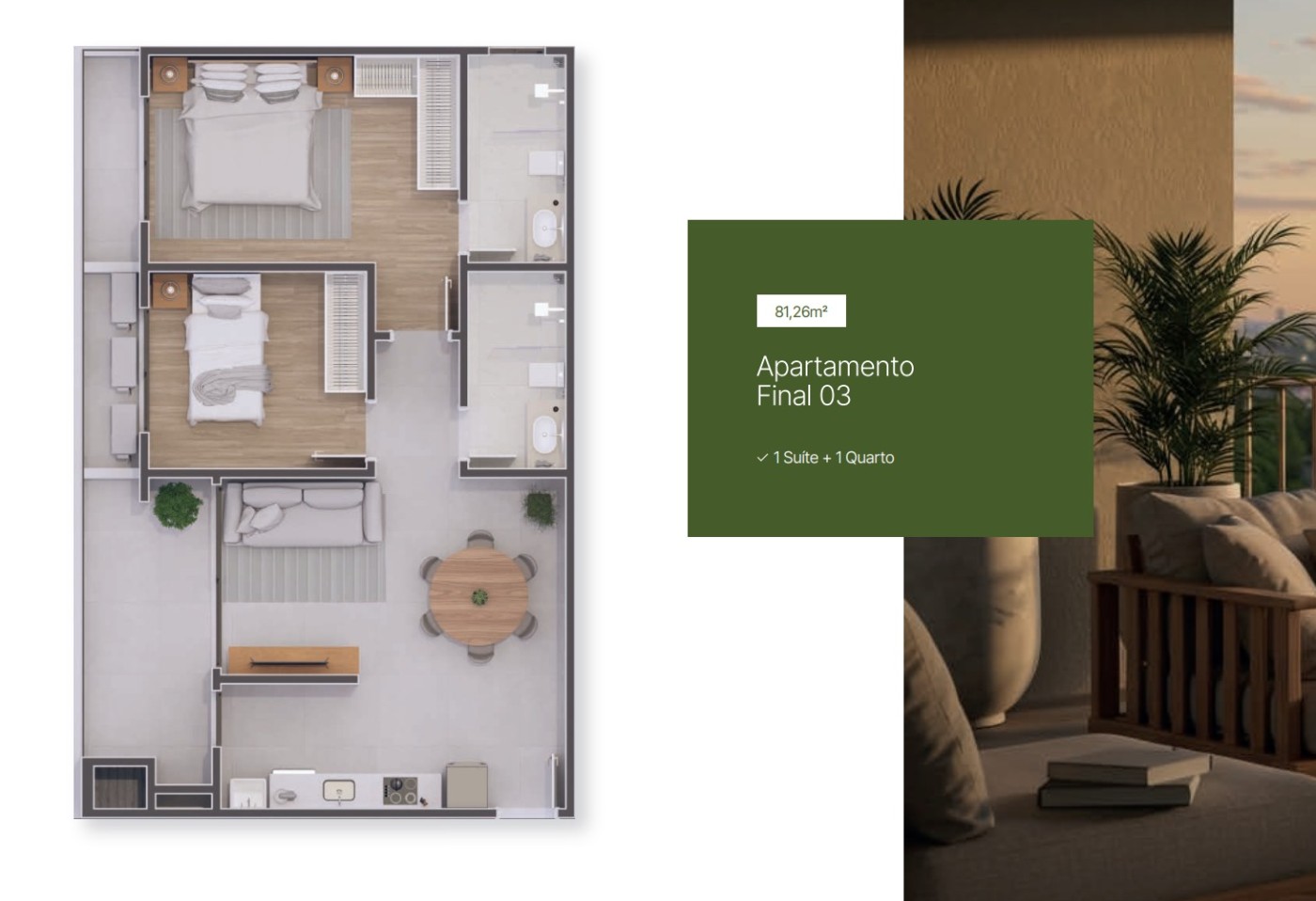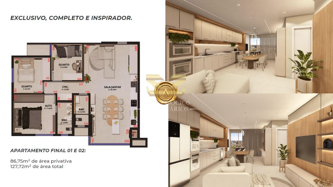 FINAL 01 E 02: 86,75m² área privativa e 127,72m² de área total.