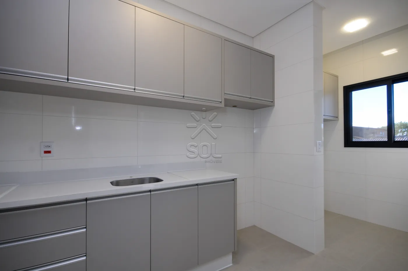 - Cozinha com móveis planejados em mdf, pia, cooktop, sugar, geladeira e forno micro-ondas, mesa com cadeiras;