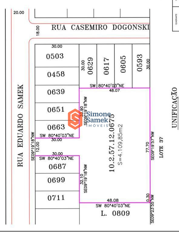 Testada principal (Rua Leonel Maitto): 82,43 m