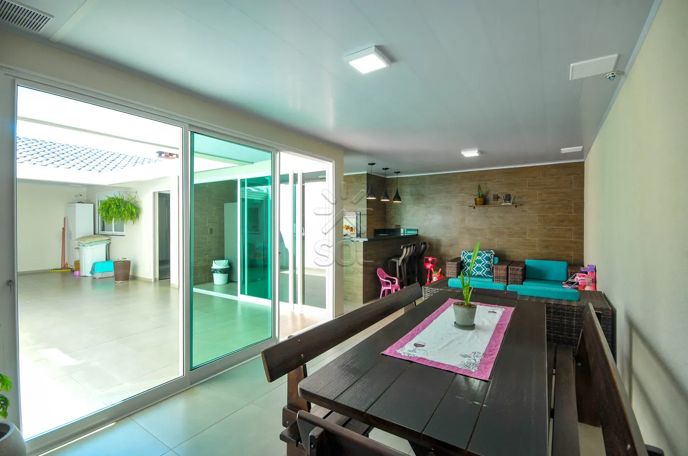 - 3 quartos, sendo 1 suíte (1 dos quartos fica ao lado do espaço gourmet);