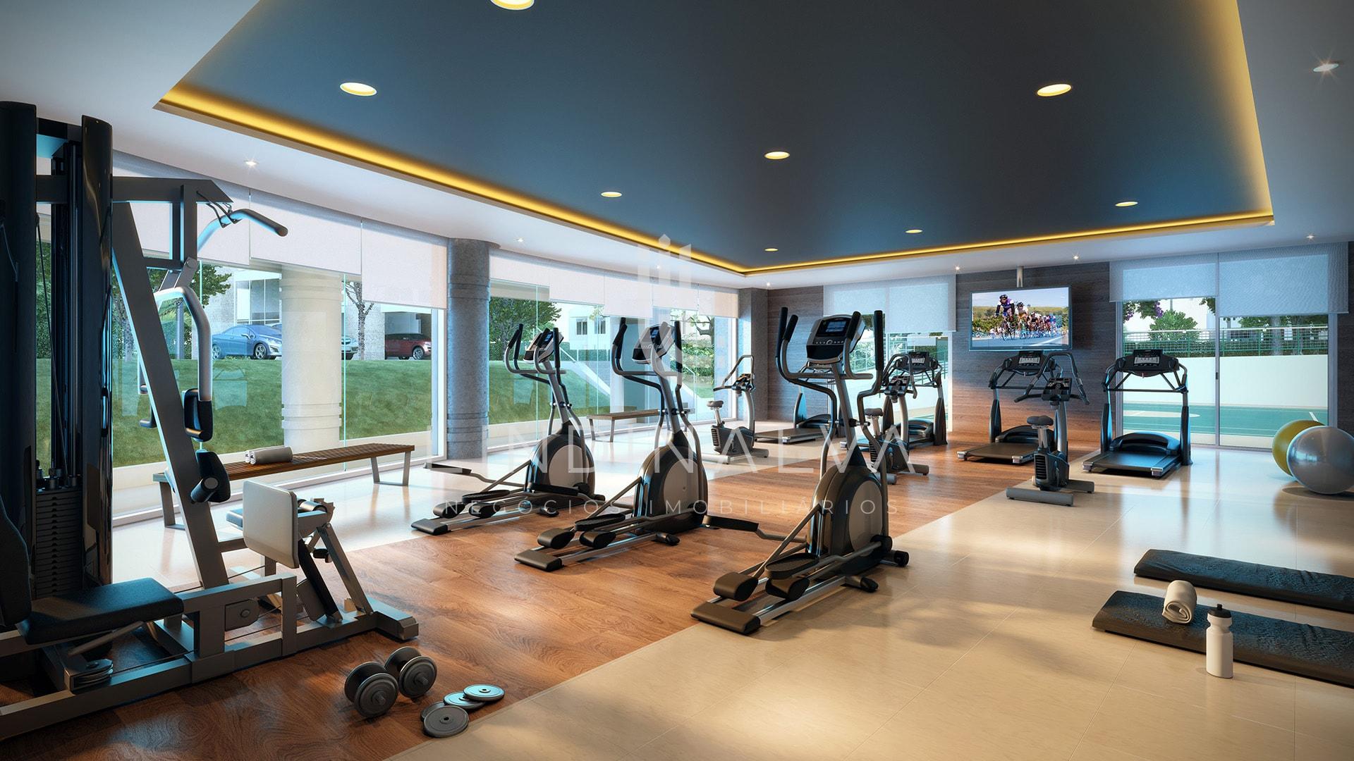 - Academia equipado e decorado
