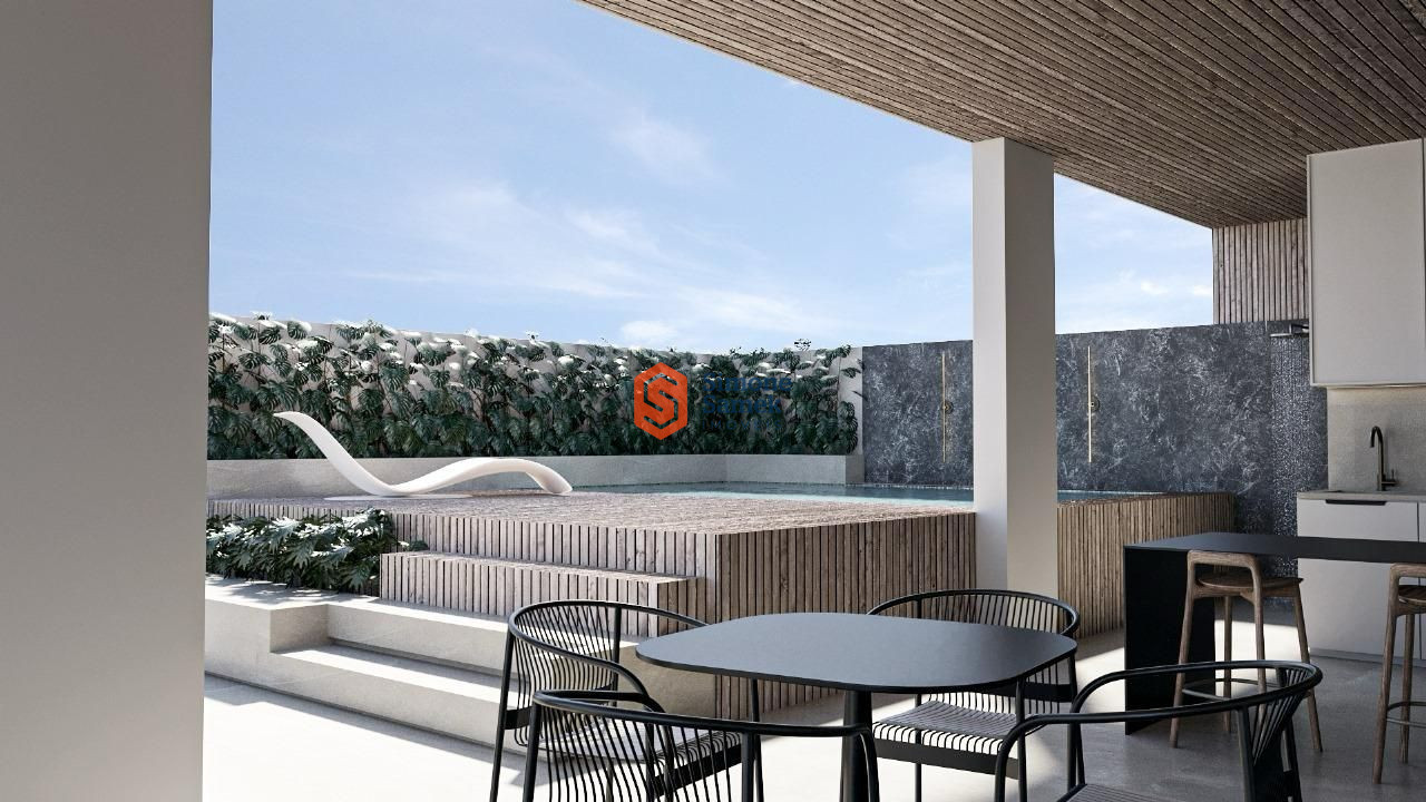 - Tipo 1: 01 apartamentos no pavimento. Essa unidade conta com cozinha, lavanderia,sala de jantar, sala de TV, sacada, lavabo social, corredor e 02 suíte;