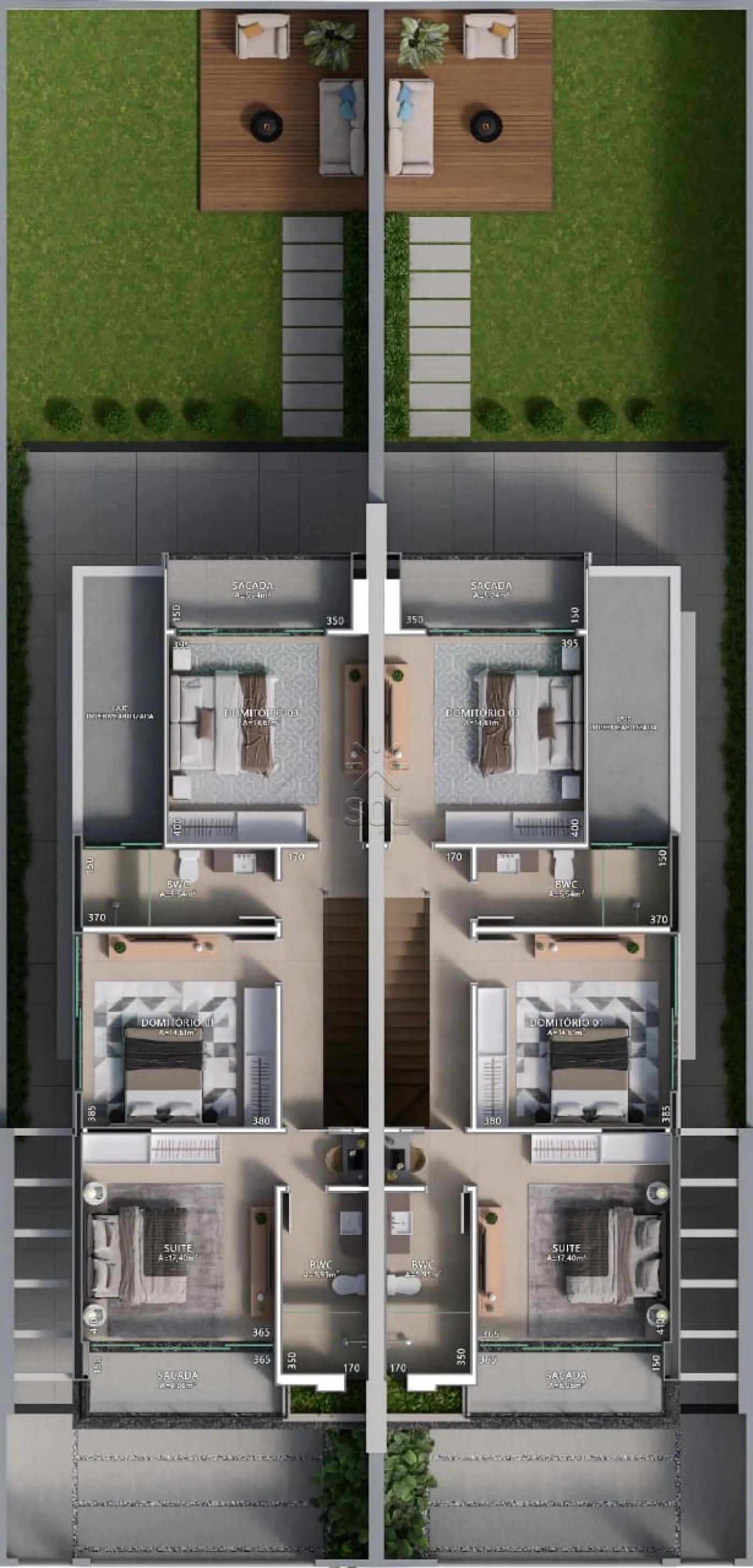 - Suíte e 1 quarto com sacada;