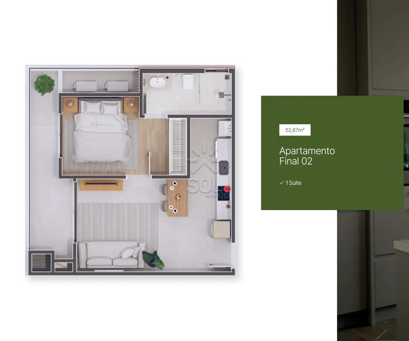 - 52,77m² de área privativa;