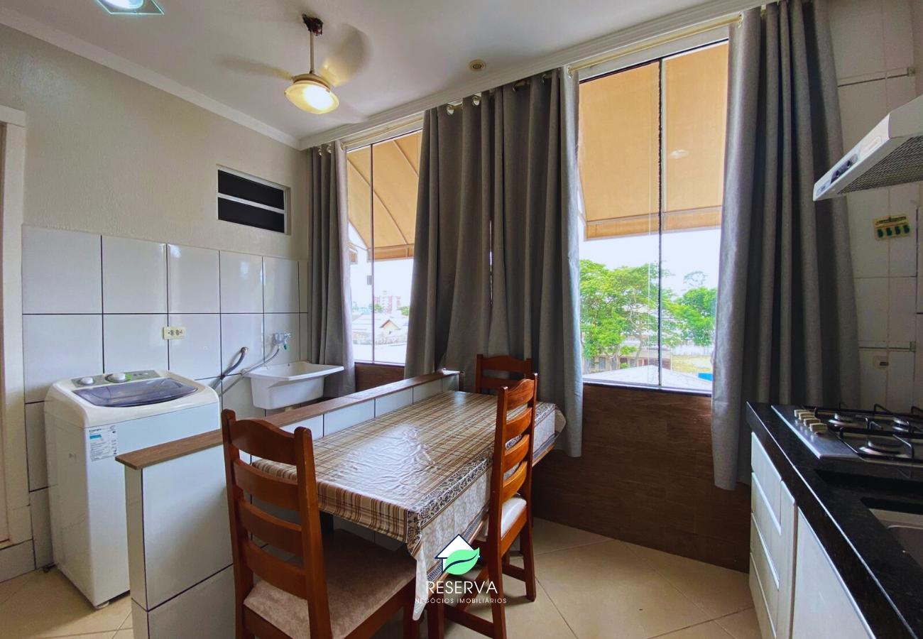 - Possui mobília completa: cama, sofá, armário, mesa com cadeiras.