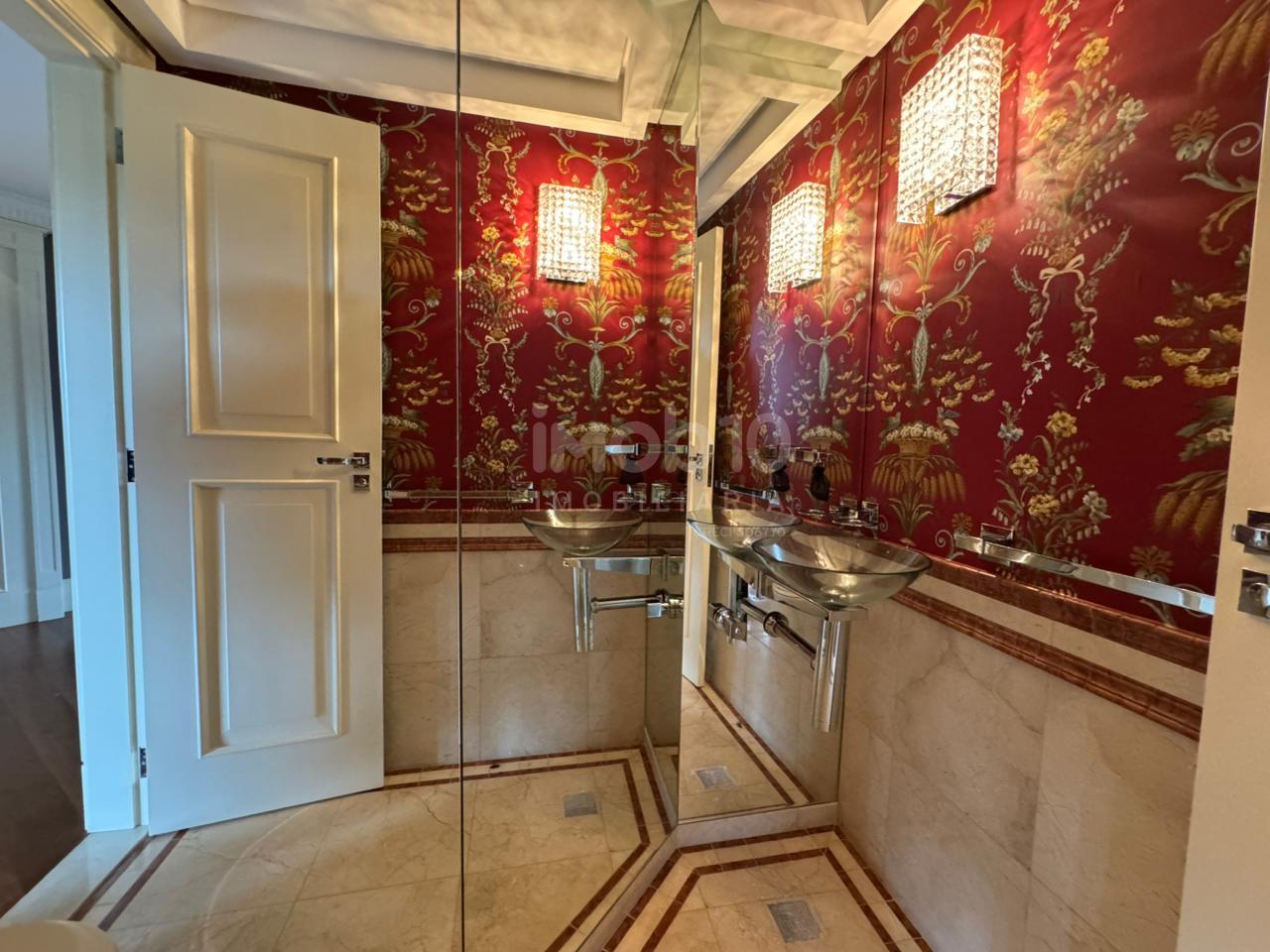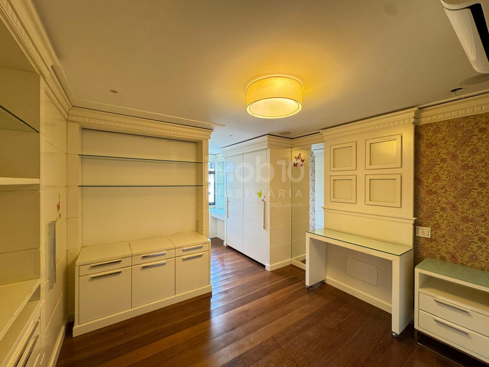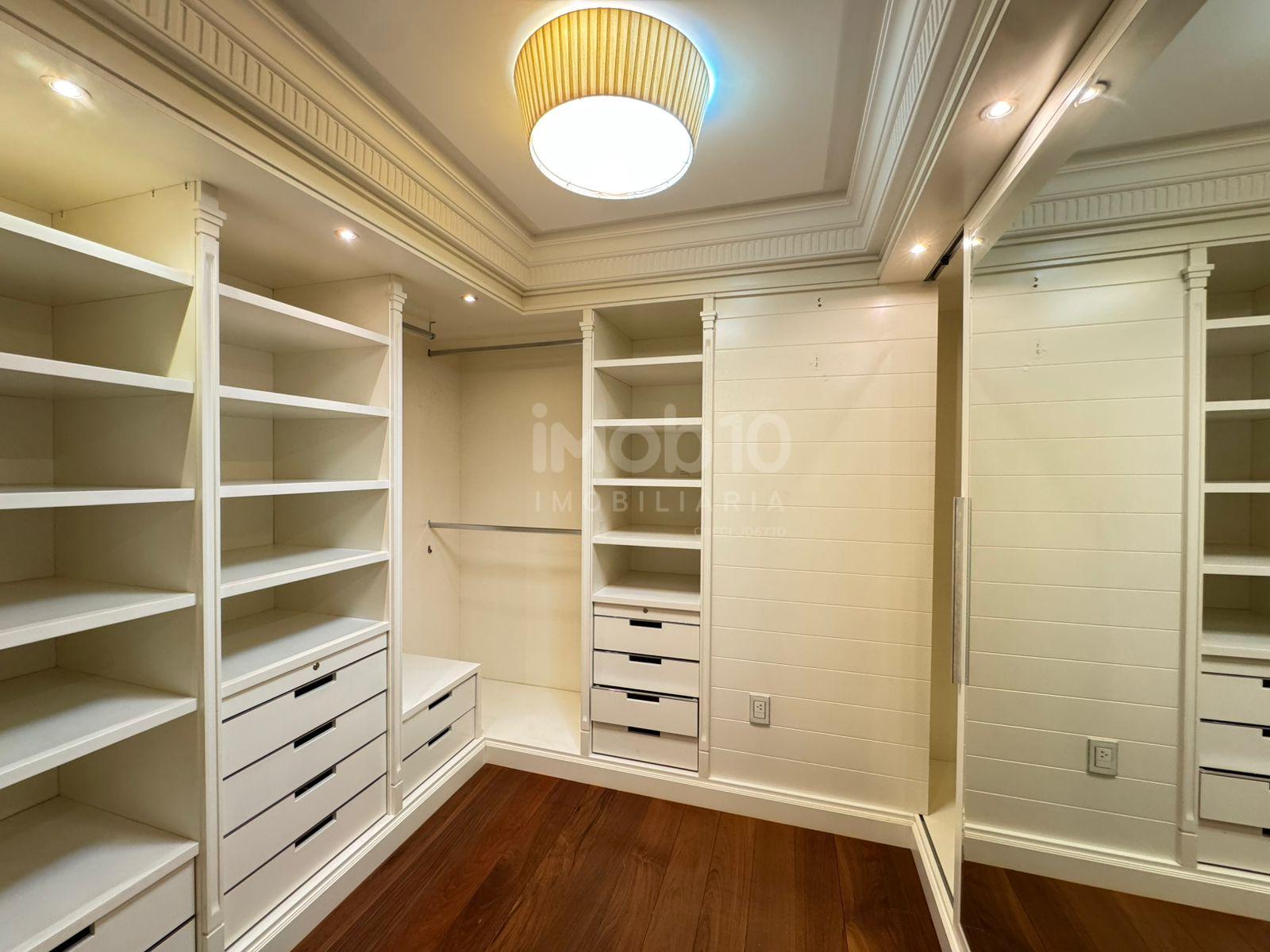 394m2 de área útil distribuídos em: 4 suítes, sendo 01 suite com hidromassagem, 5 banheiros, escritório, 4 salas sendo 1 de estar , 1 de jantar e outras duas salas para receber seus amigos e familiares, lavabo, cozinha extremamente ampla, e um diferencial, Área de serviço, com mais 1 suíte para Secretária. Armários disponíveis na área de serviço, banheiro, closet, cozinha, dormitório e na sala de home theater.