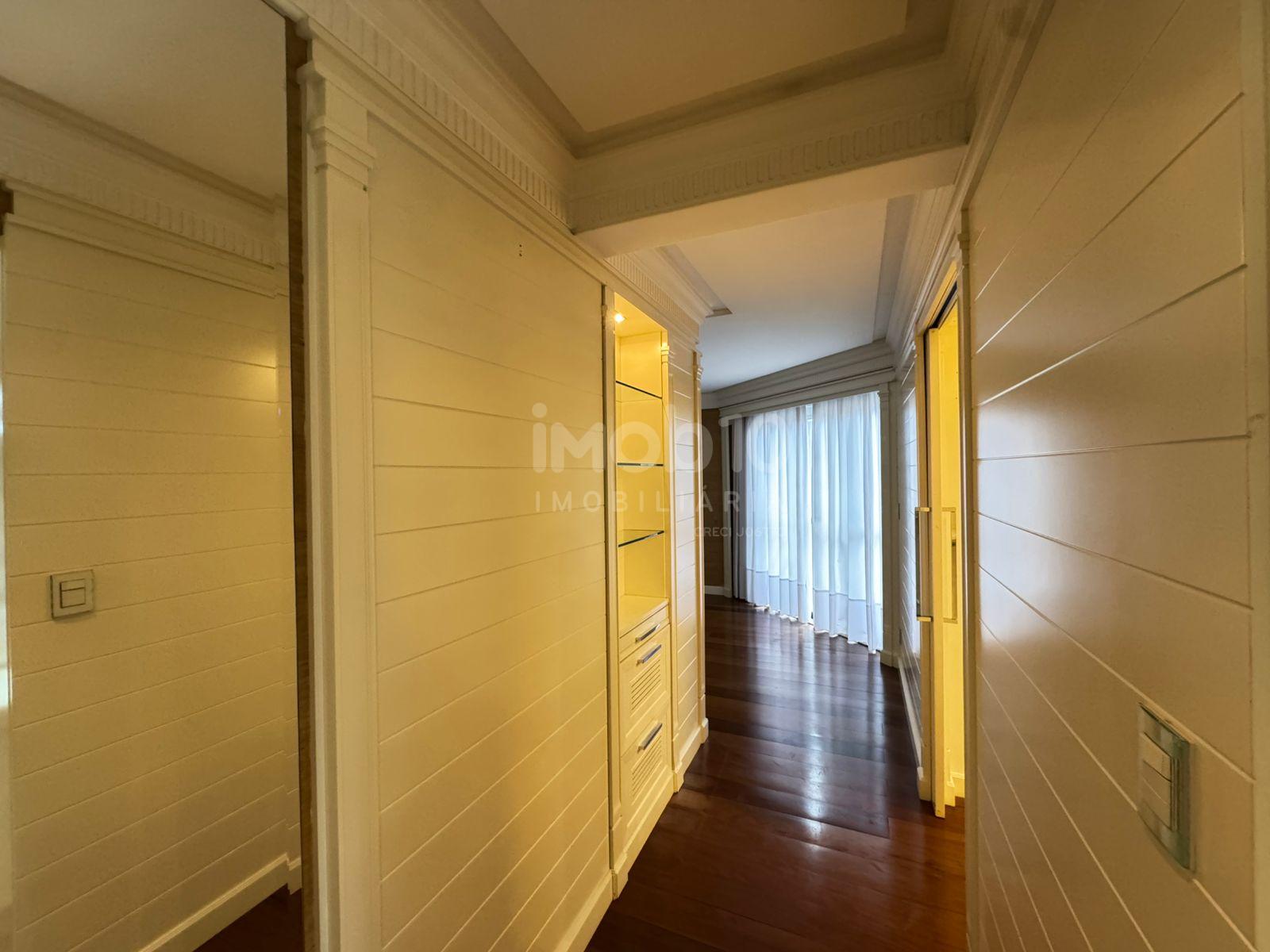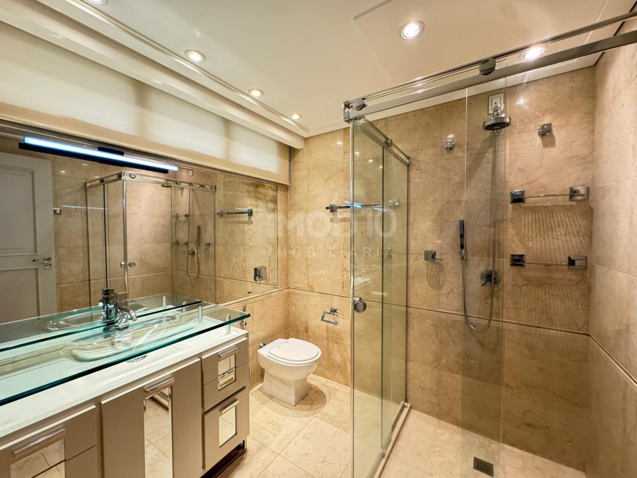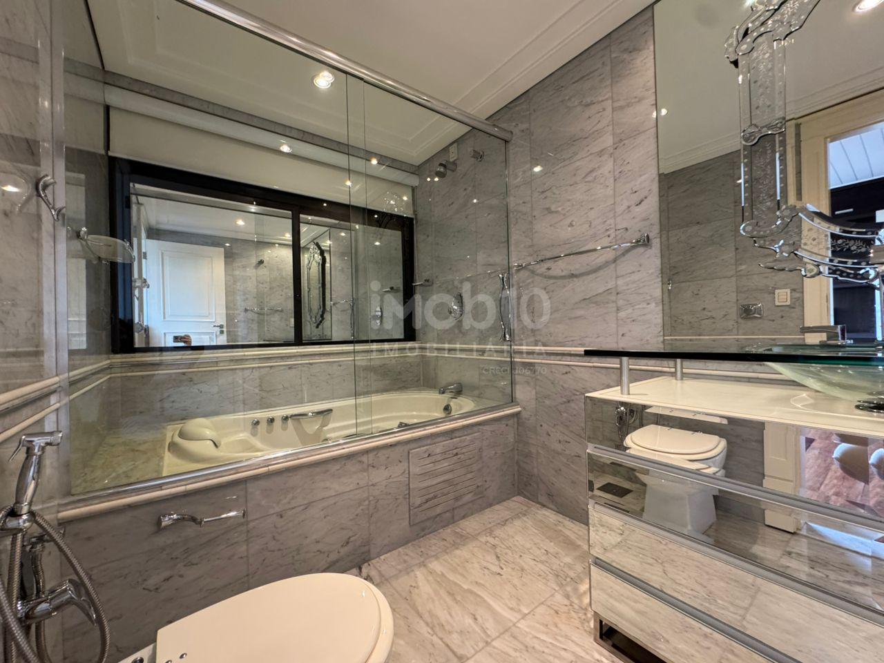 394m2 de área útil distribuídos em: 4 suítes, sendo 01 suite com hidromassagem, 5 banheiros, escritório, 4 salas sendo 1 de estar , 1 de jantar e outras duas salas para receber seus amigos e familiares, lavabo, cozinha extremamente ampla, e um diferencial, Área de serviço, com mais 1 suíte para Secretária. Armários disponíveis na área de serviço, banheiro, closet, cozinha, dormitório e na sala de home theater.