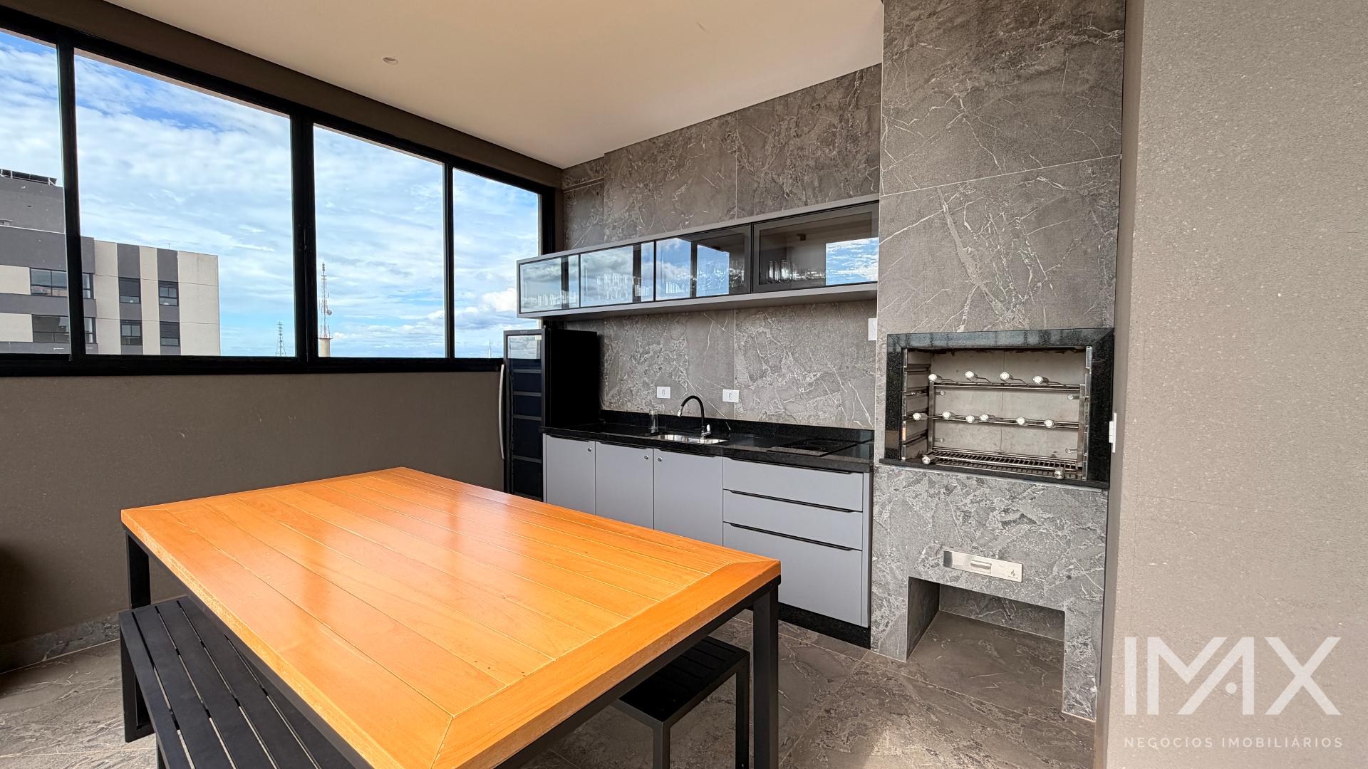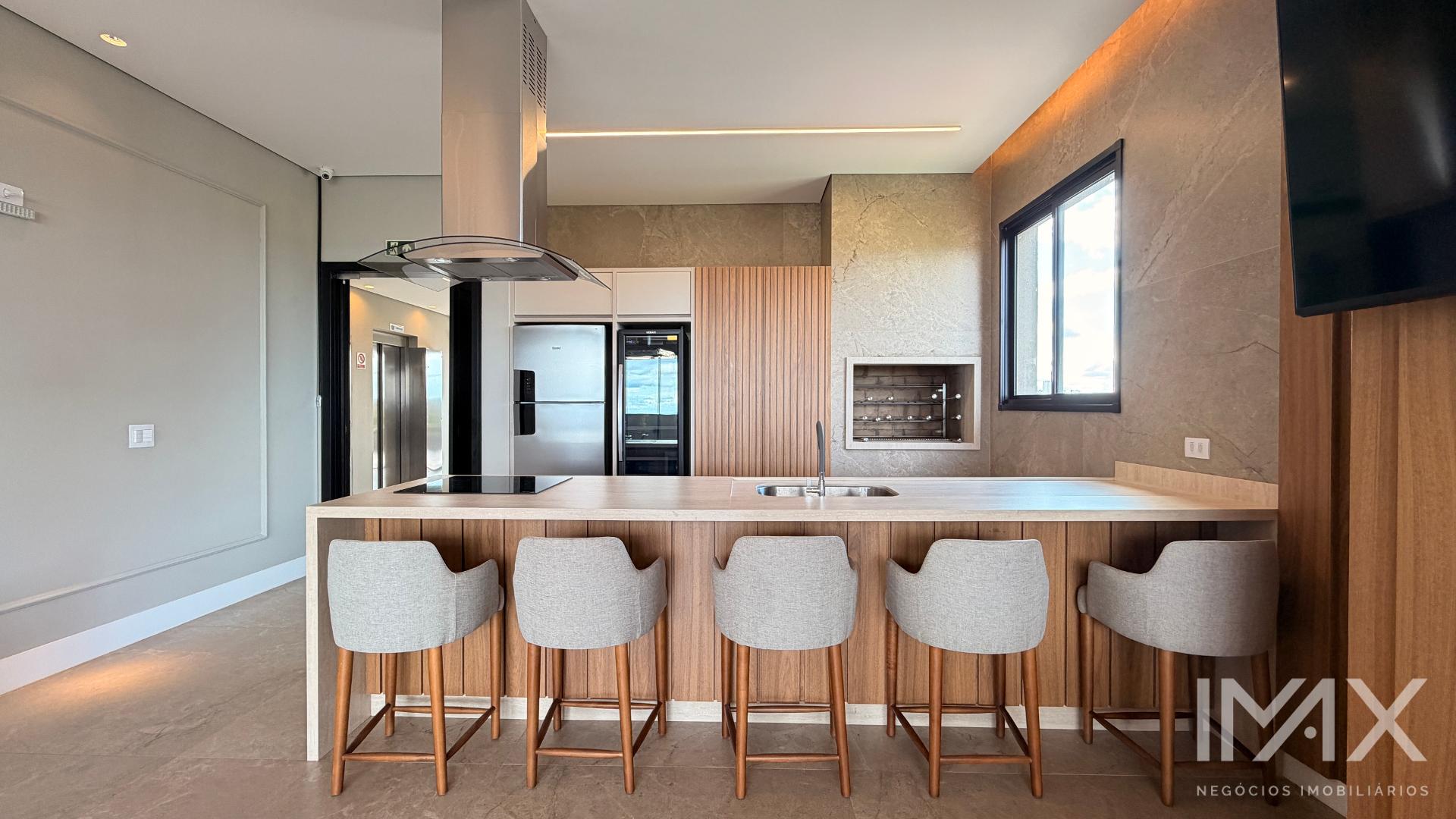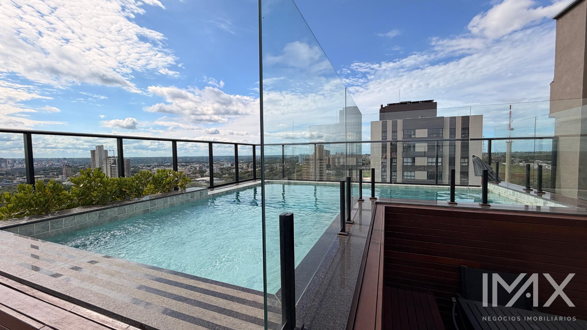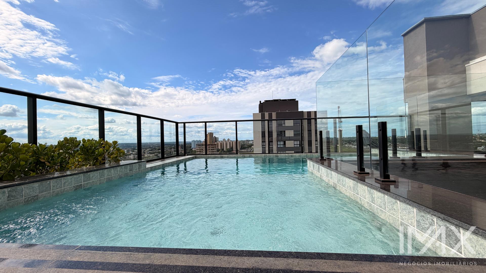 Área de lazer no rooftop (14º andar) composta de: piscina com borda infinita, salão de festas, churrasqueira e academia.