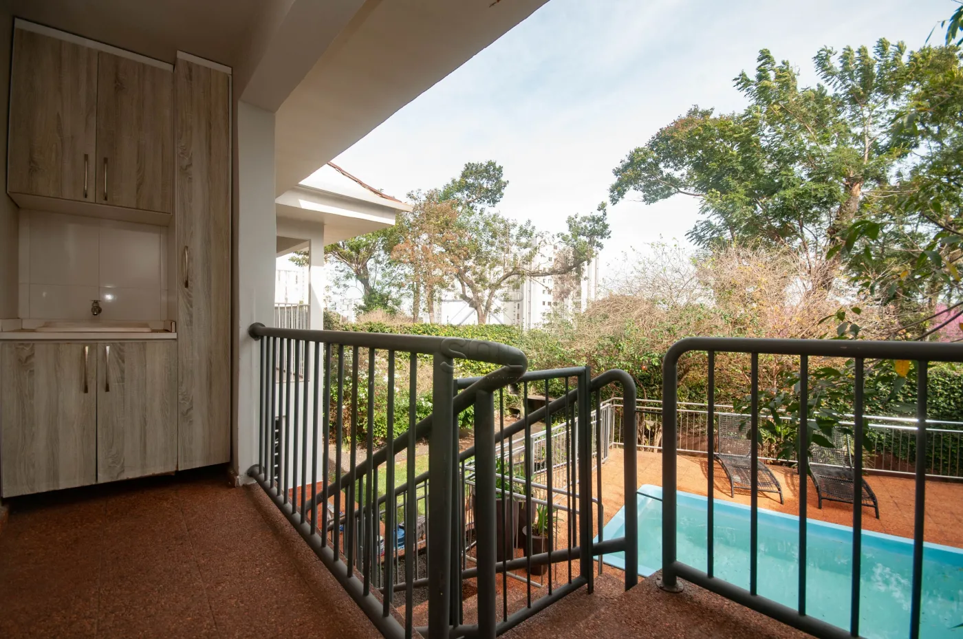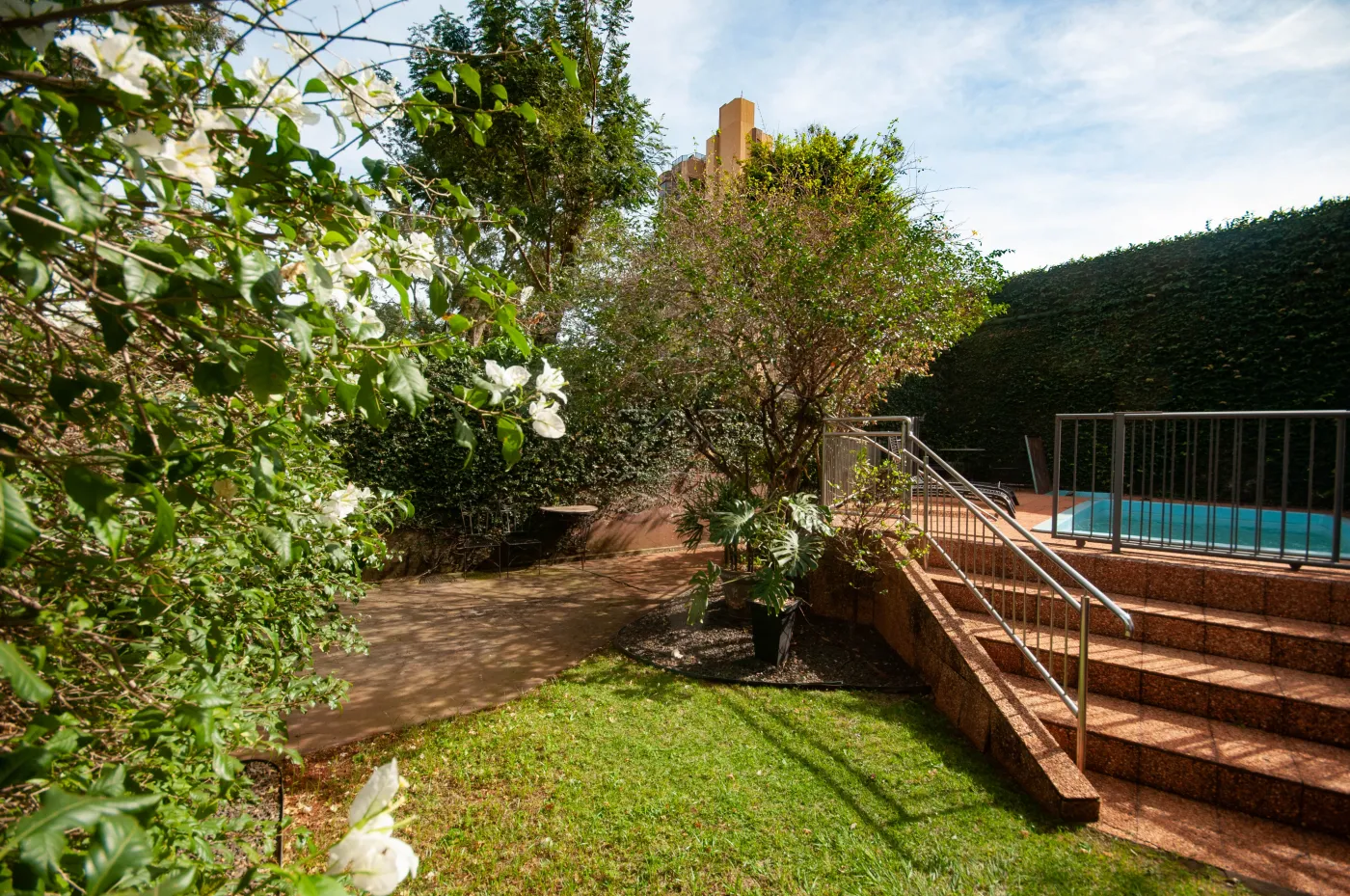 Área externa com piscina;
