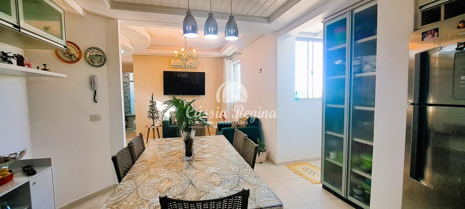 Descrição:- Sala de estar/ jantar com sacada e churrasqueira;